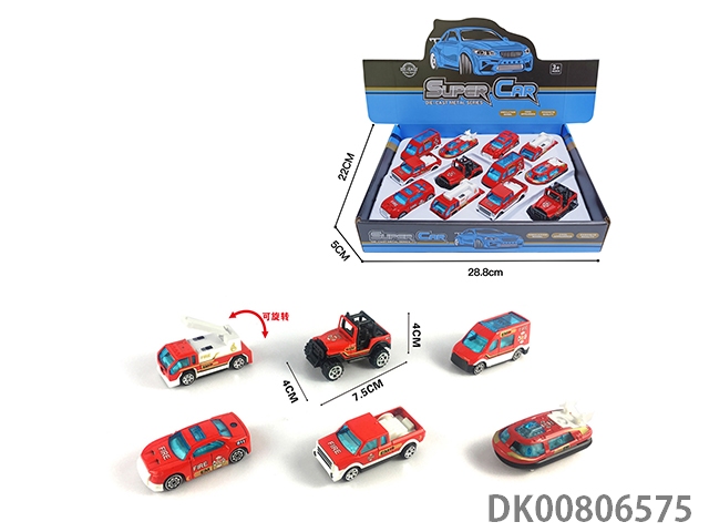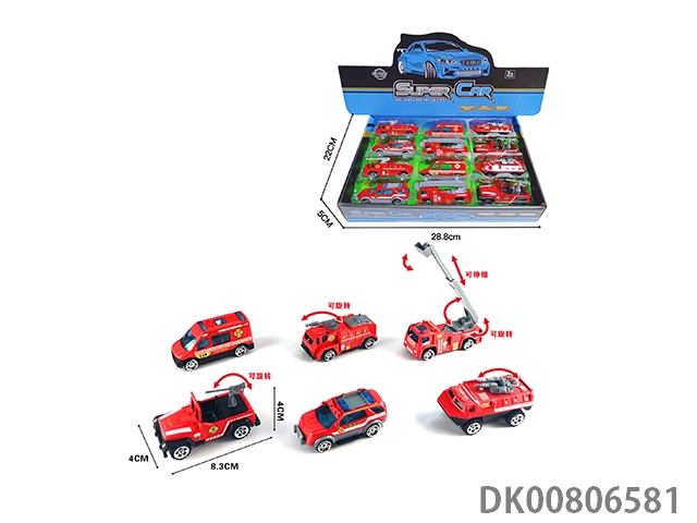 12 Pieces of 1:55 alloy sliding fire truck display box (6 mixed) 12pcs/box