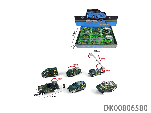 12 Pieces of 1:55 alloy sliding military vehicle display box (6 mixed) 12pcs/box