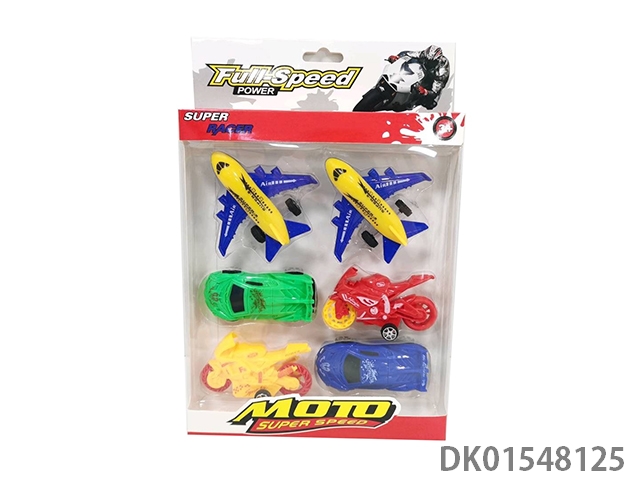 Sliding solid color passenger plane, motorcycle, sports car (6 pieces), 4 models, 4 colors