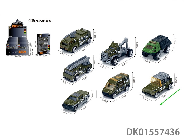 English 1:64 sliding military 7 mixed (3 pieces) car model 12 boxes/display box