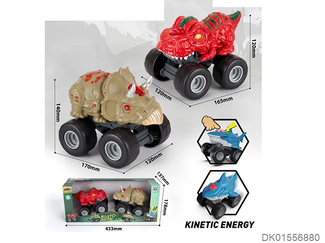 Sliding tyrannosaurus rex and triceratops bigfoot (with lights and music) 2-pack