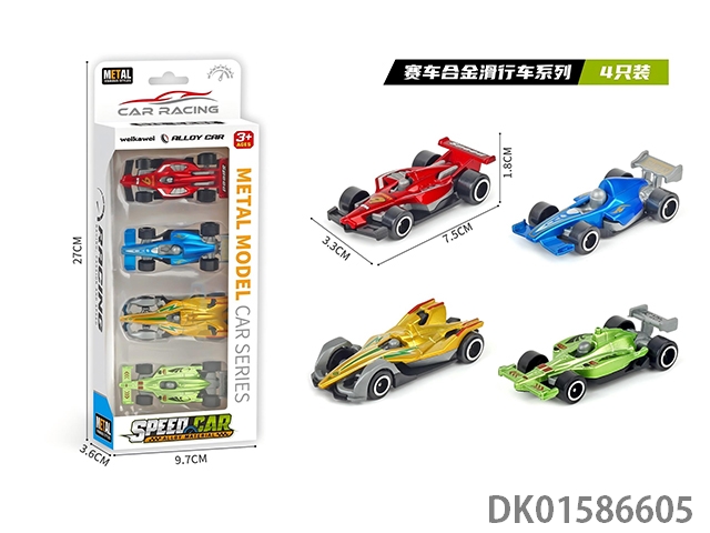 Set of 4 racing cars (alloy sliding)