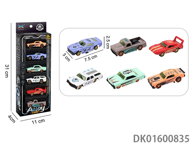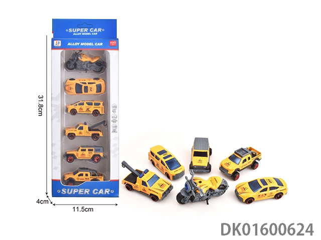 Alloy sliding car set, 6pcs