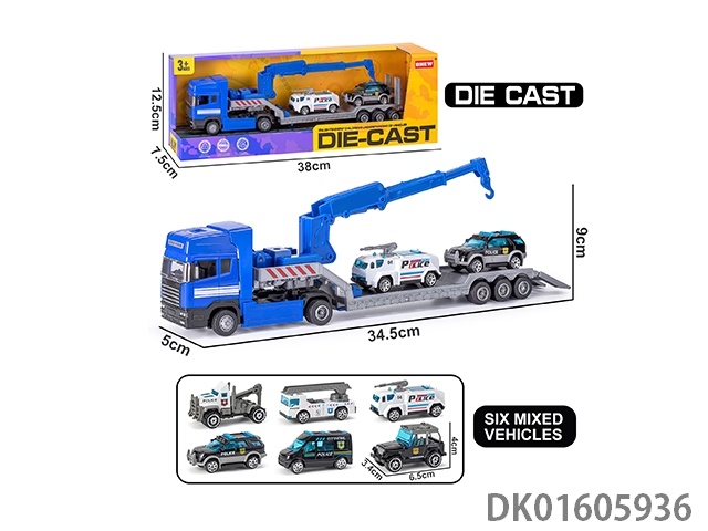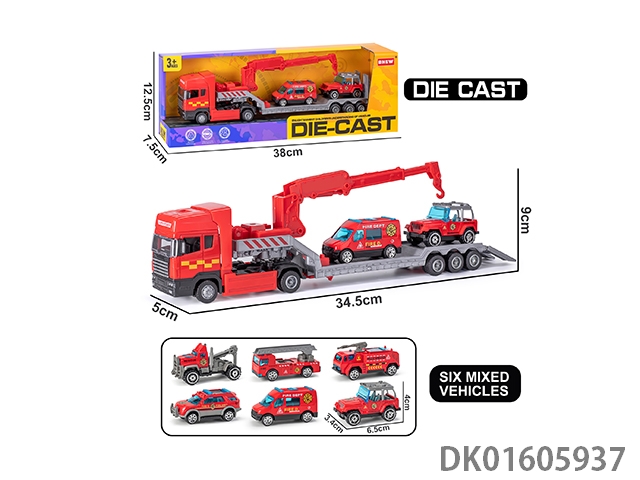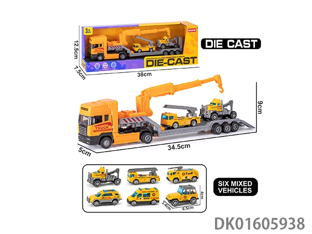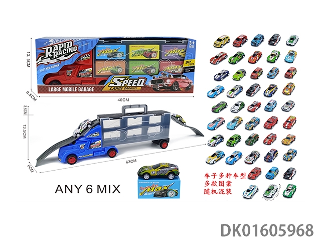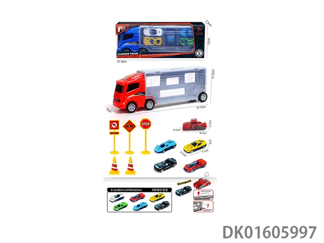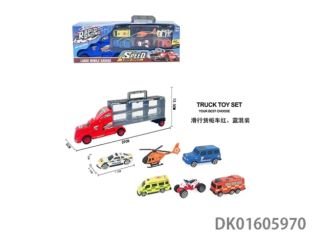 Handheld gift box sliding container truck with 6 sliding alloy sports cars