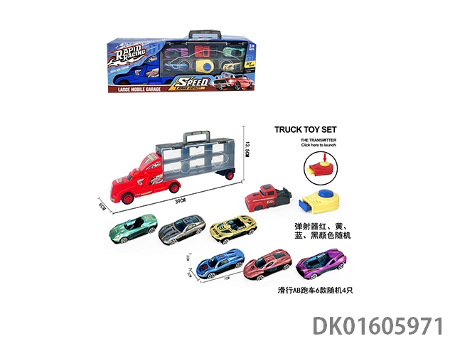 Handheld gift box sliding container truck with 4 sliding ab sports cars and 2 catapults