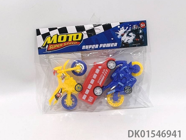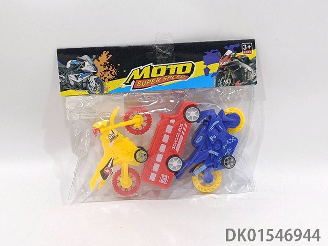 Sliding solid color motorcycle (3pcs) school bus