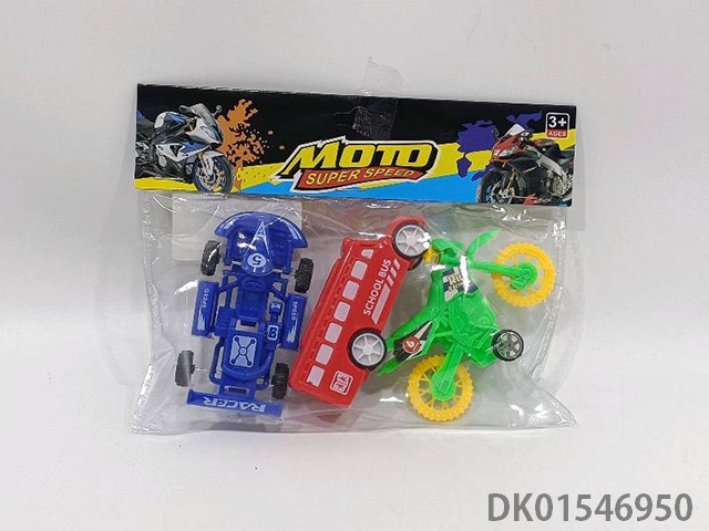 Sliding solid color motorcycle, school bus, go kart (3pcs)