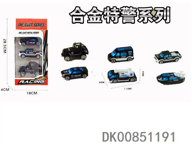 1: 64 Alloy police car 3pcs