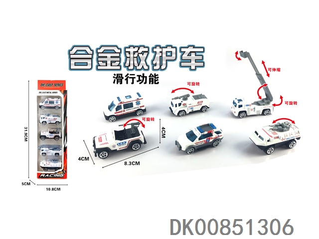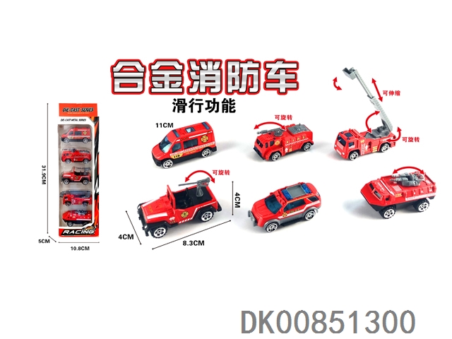 1: 55 Alloy sliding fire truck 5pcs
