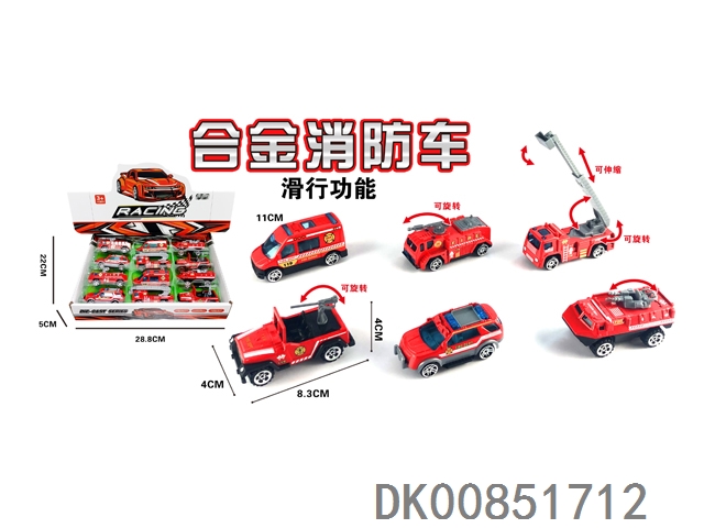 1: 55 Alloy sliding fire truck 12pcs