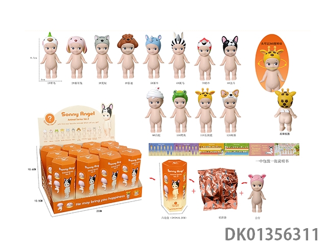 12 Animal themed figurines from the sleeping angel series, 12pcs/box