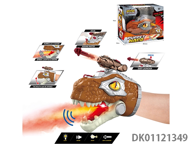 Sound light spray gloves dinosaur headband gun (movable mouth)
