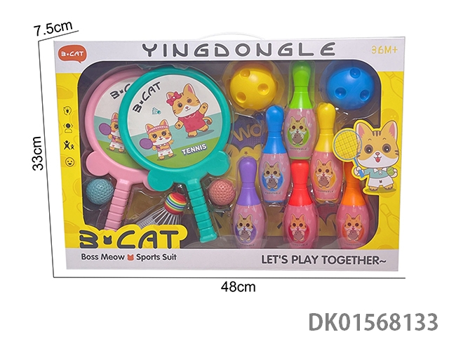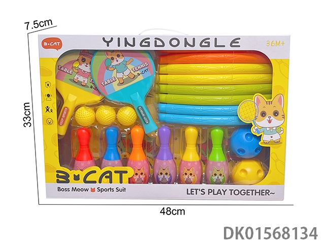 Bowling and racket and hula hoop sports kit