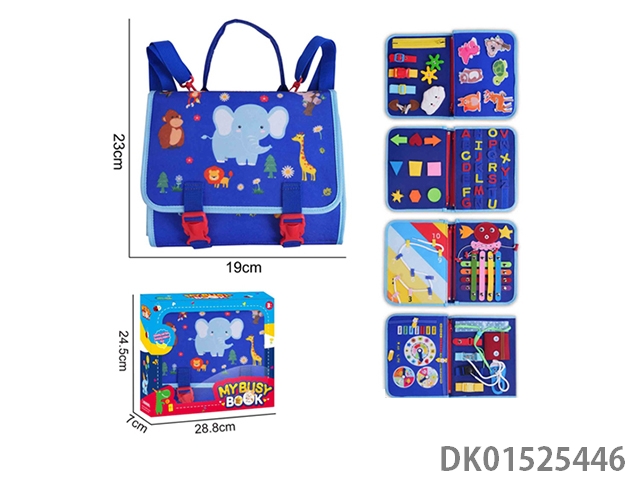 Montessori children’s early education puzzle - felt backpack blue 5-page wild animal busy edition
