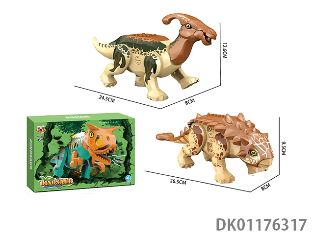 Building block dinosaur with sound, two mixed models of paractylosaurus and ankylosaurus (single pack)