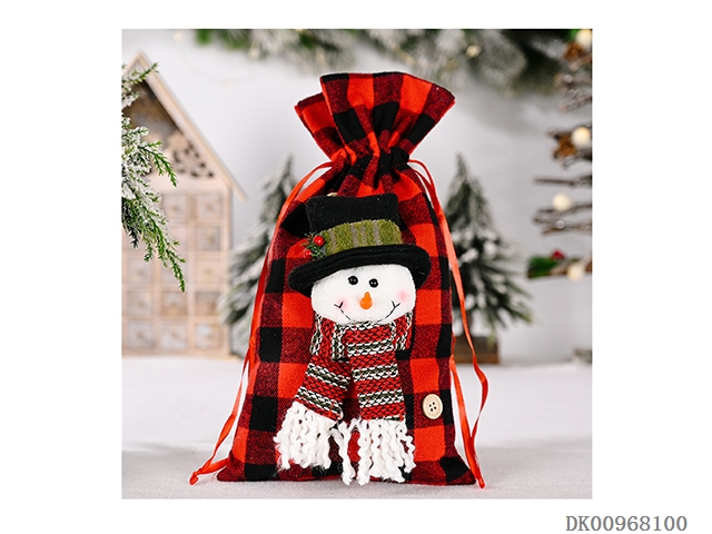 Red and black lattice gift bag snowman