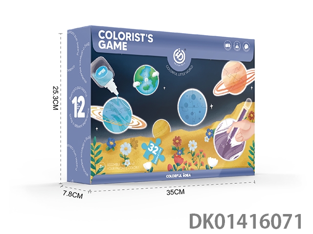 Scientific experiment watercolor pen graffiti cardboard puzzle - eight planets