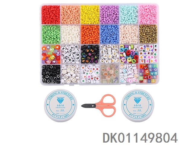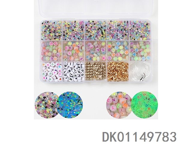 Glow rice beads and letter beads with lobster loop wrap pliers and scissor thread (24 grid)