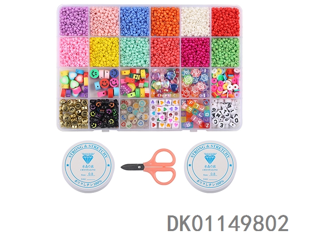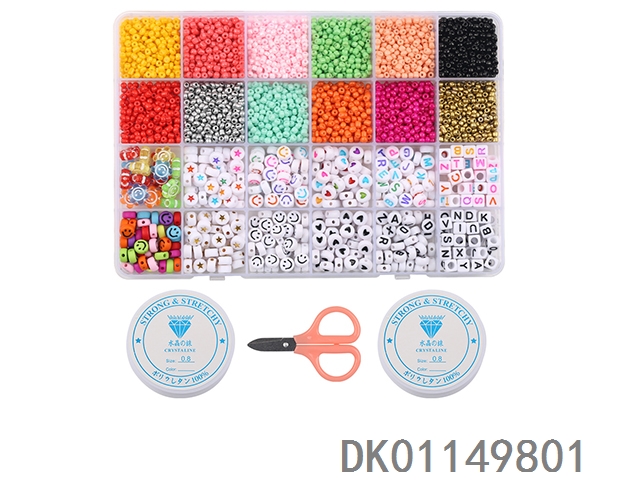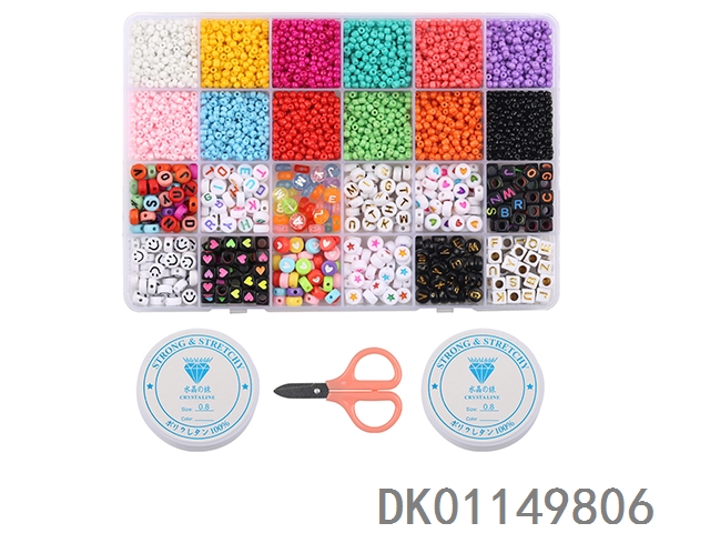 Rice beads, colorful beads, and scissors thread tweezers (26 cells)