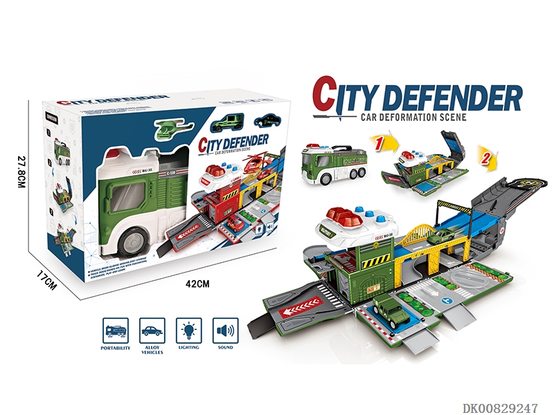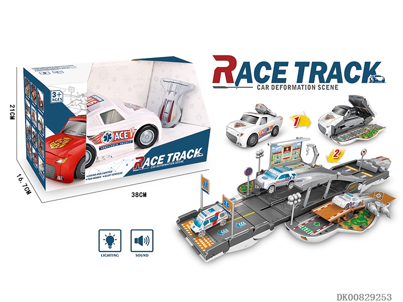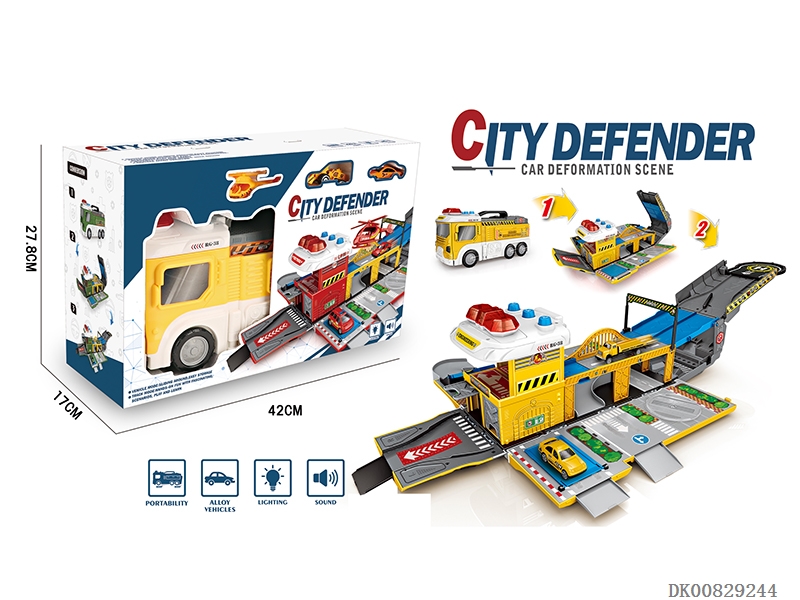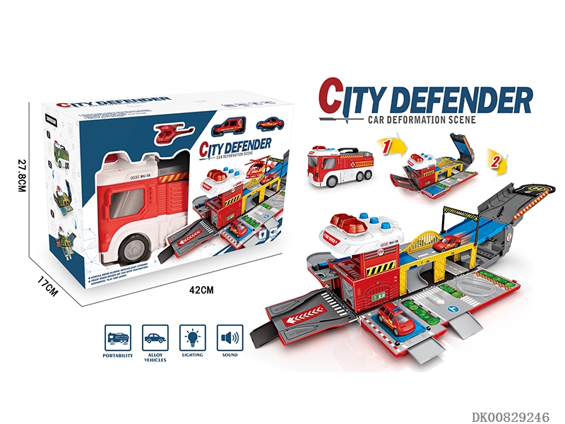 Fire fighting alloy light music catapult vs race track deformation car