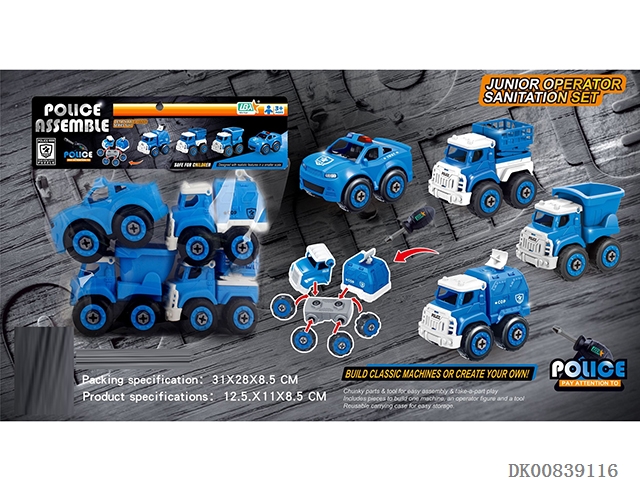 Diy disassembly and assembly of small police car (4 pieces)
