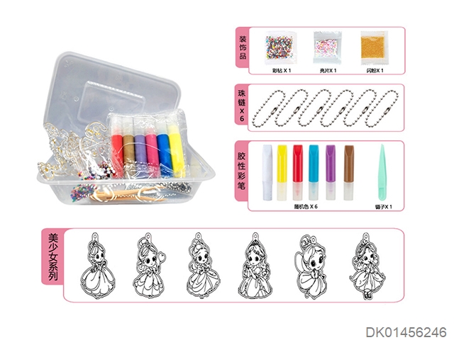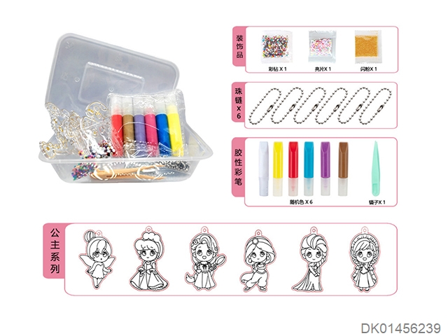 6 Princess diy non baking adhesive painting pendants
