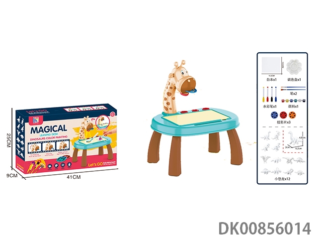 Giraffe projection painting storage table and 12 kinds of painted dinosaurs