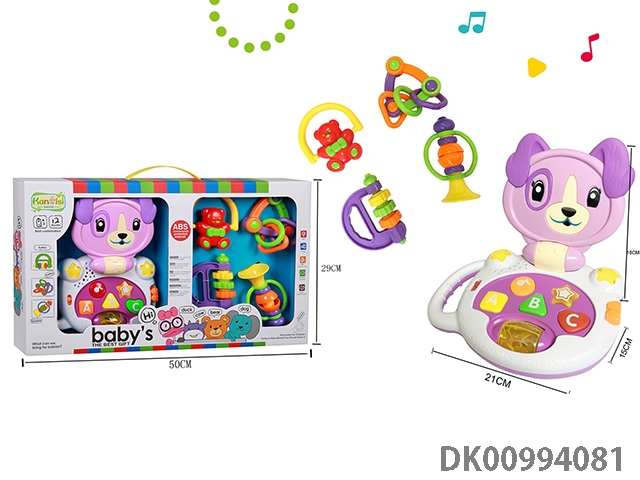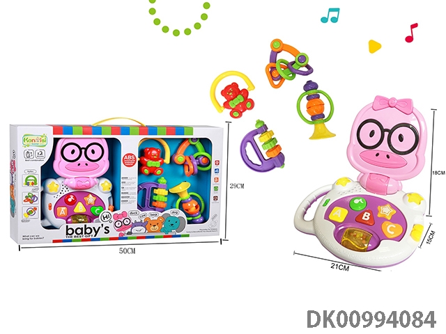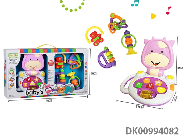 Pink music cartoon cow and rattle