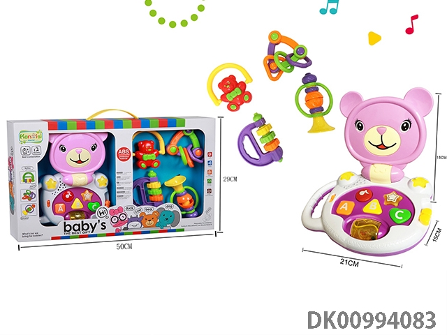 Pink music cartoon bear and ringing bell