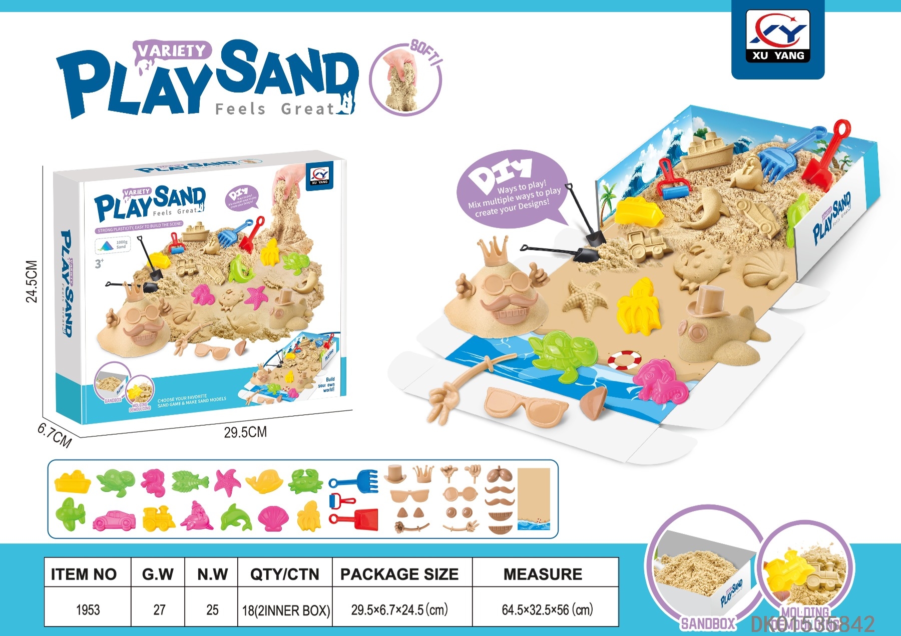 Space sand scene set - beach theme with built in color images and 1000g space sand (sand color)