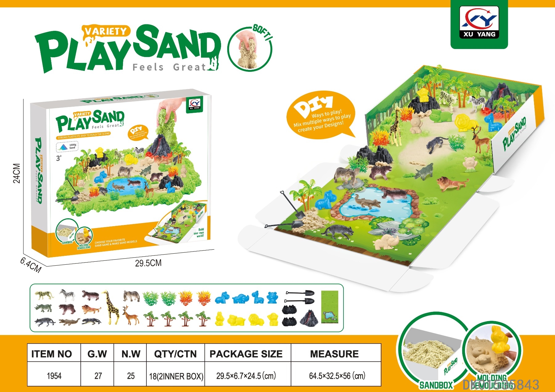 Space sand scene set - forest animal theme with built in color images and 1000g space sand (500g sand and 500g green)