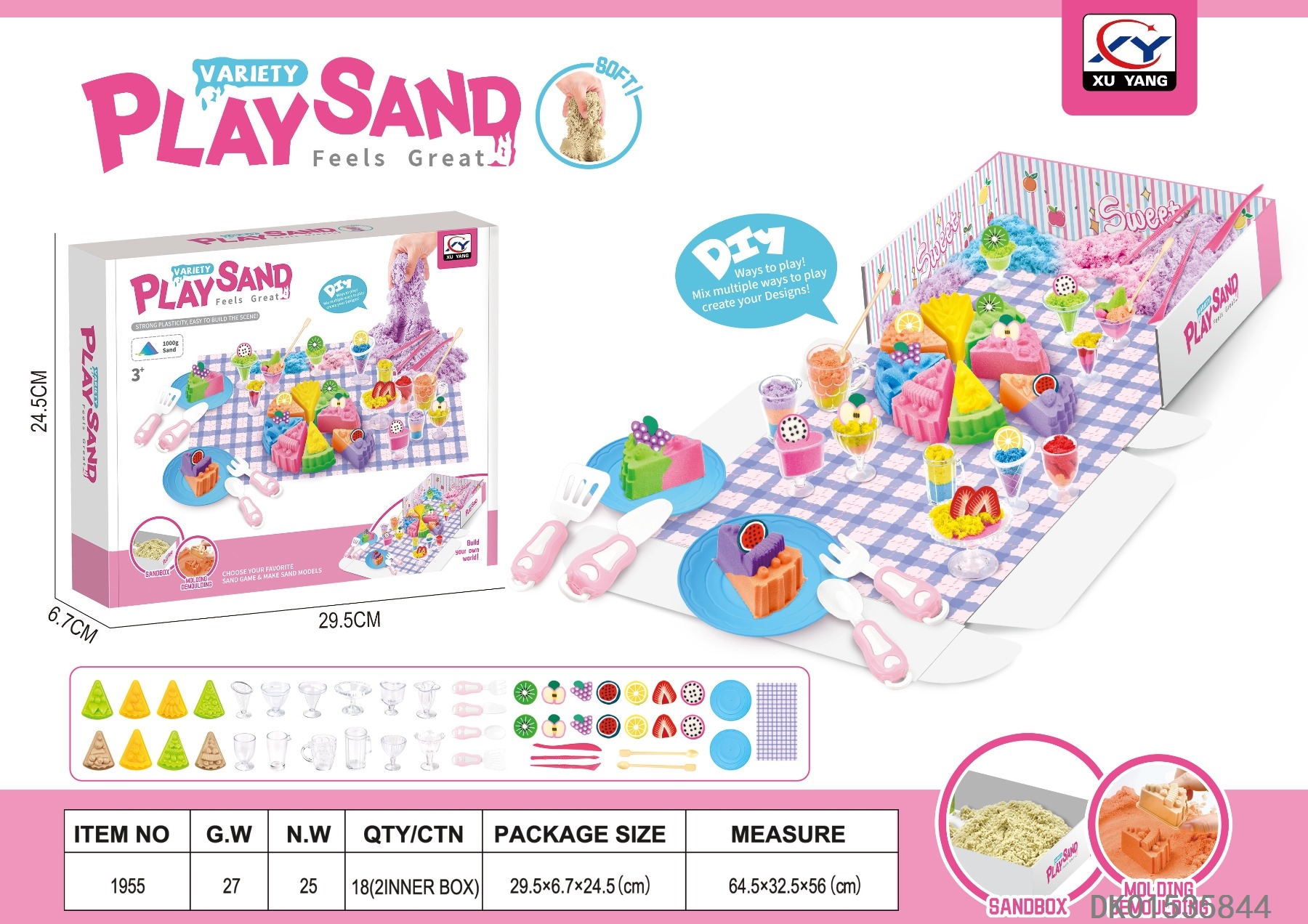 Space sand scene set - diy ice cream cup cake theme with built in color images and 1000g space sand (random 5 colors * 200g)