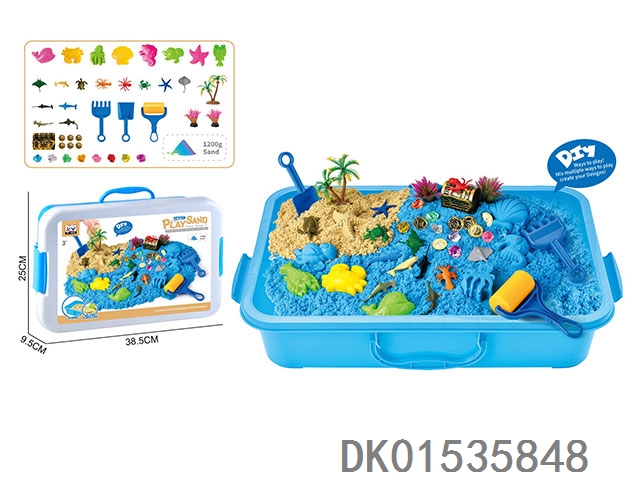 Space sand scene set - ocean treasure theme and storage box with 1200g space sand (blue sand 1000g and 200g sand colors)