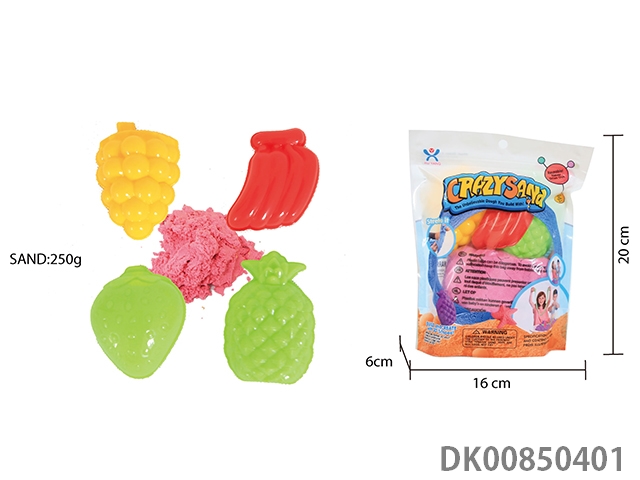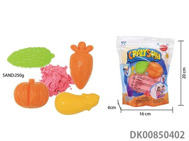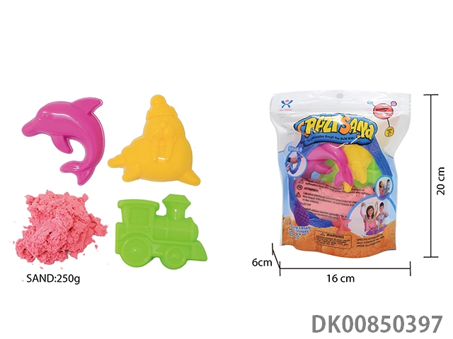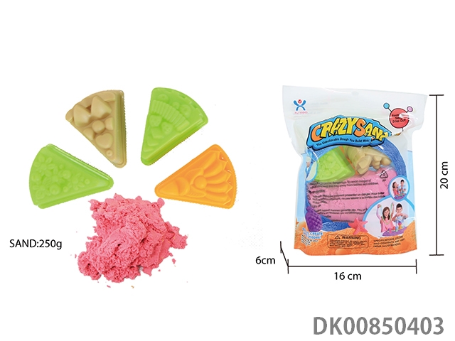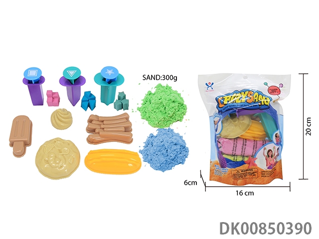 Vertical bag - 300g cotton stretch sand and random geometry jigsaw diy mold 3 pieces and random food 5 pieces (2 color sand)