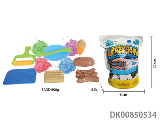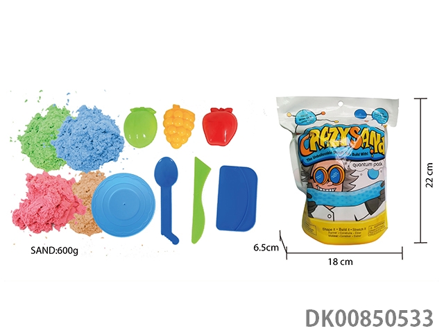 Vertical bag - 600g cotton stretch sand, 3 pieces of random tools, 5 pieces of random food and 1 tableware plate (4-color sand)