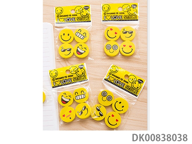 Creative smiley face cartoon rubber (4 pcs, 1 pack)