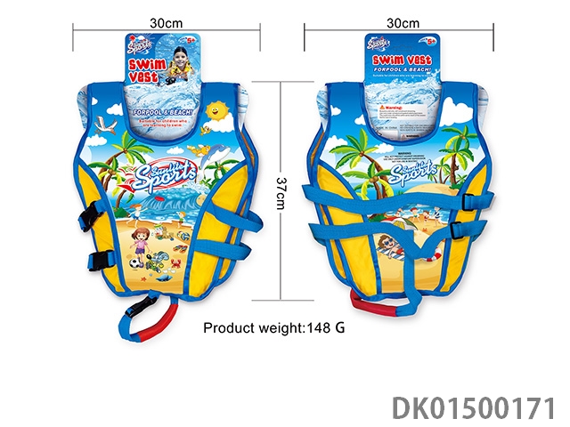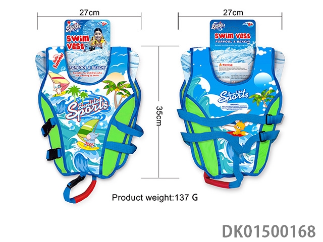 Large blue orange sunshine beach children’s life jacket
