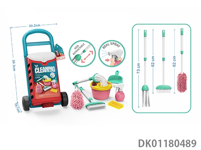 Cleaning cart set (with vacuum cleaner, with sound, equipped with foam particles, able to absorb foam, 3 aa particles without power)