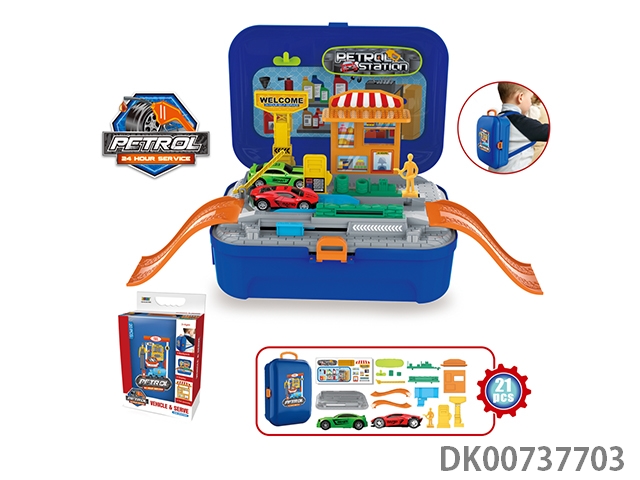 Simulated gas station backpack box