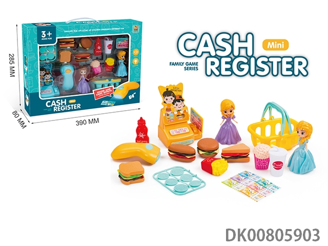Mini cash register fast food restaurant with doll (scanner with light and sound)