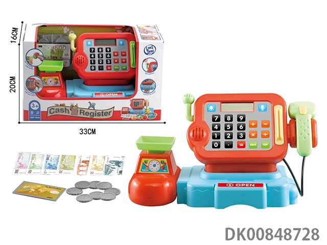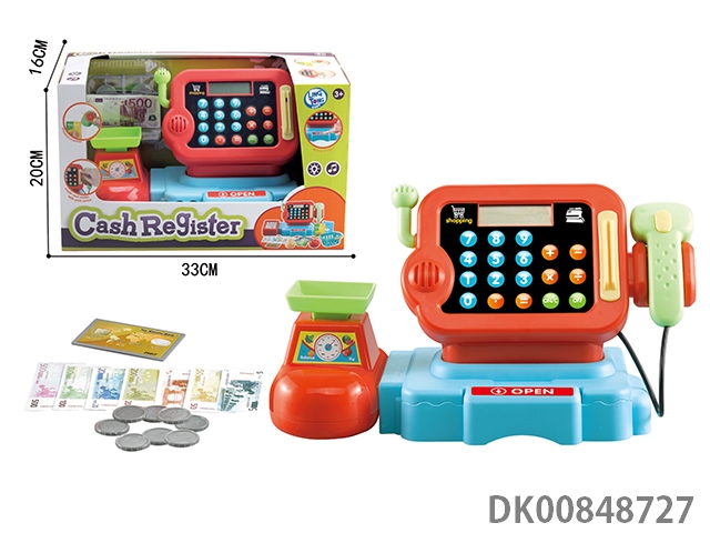 Cash register with functions of calculation, scanning and sound