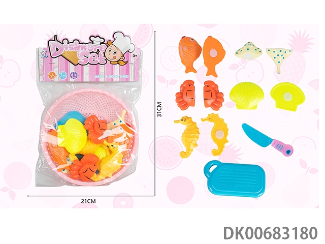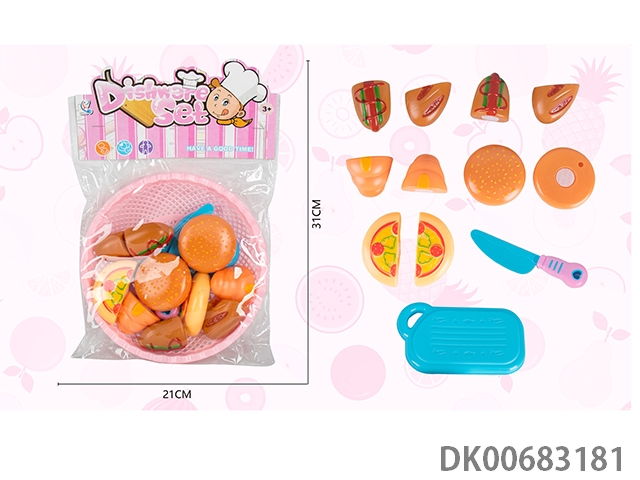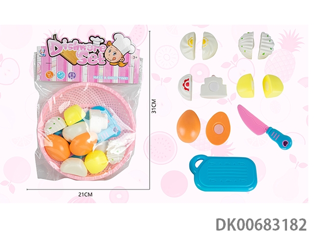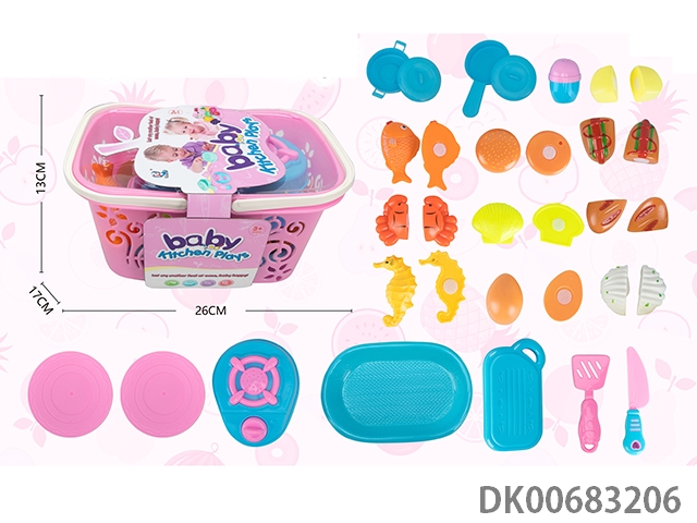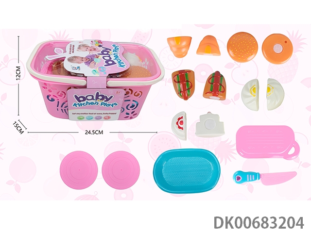 Basket cutting food and kitchenware