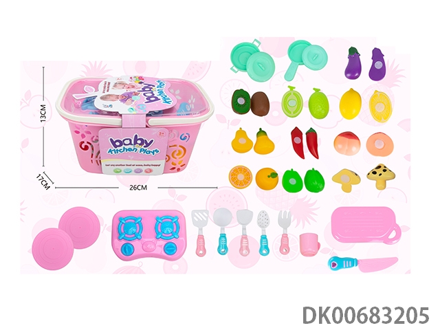 Basket cutting fruits and kitchenware