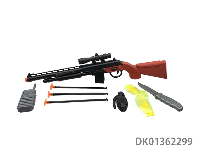 Needle gun with small knife, walkie talkie, glasses, grenade