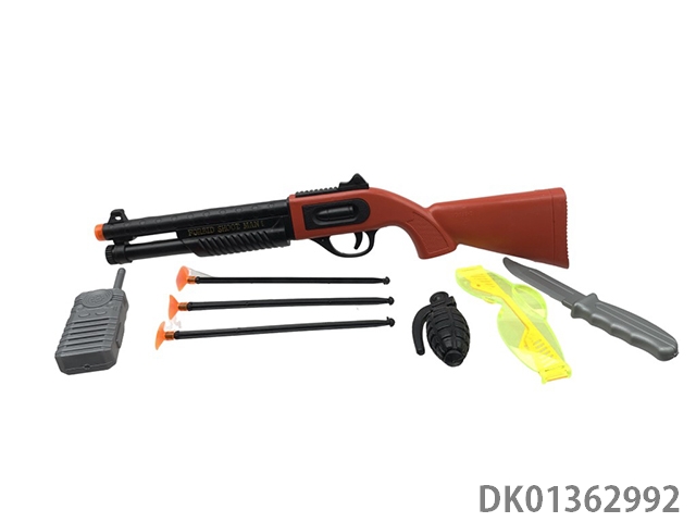 Needle gun with walkie talkie, airplane, 2 ducks