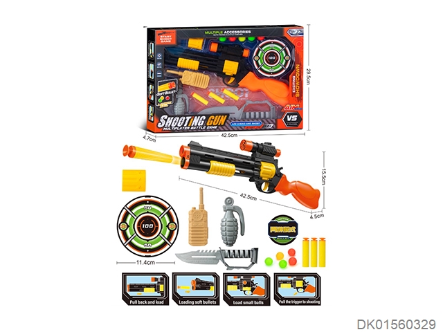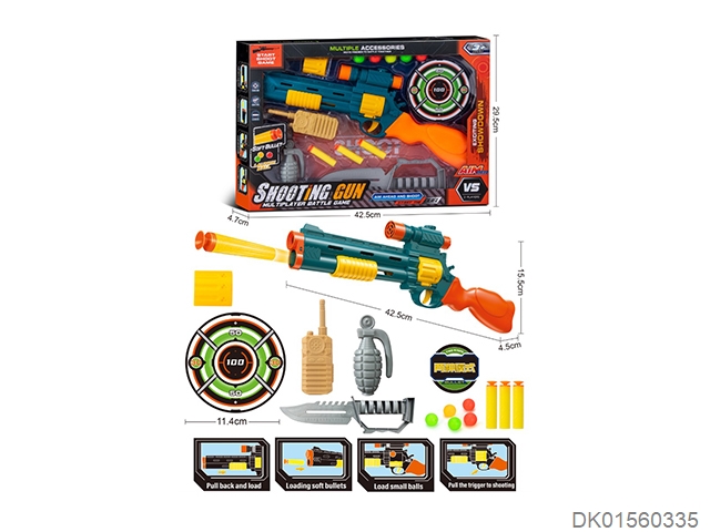Window box eva suction cup soft bounce table tennis gun with round target, walkie talkie, grenade and knife