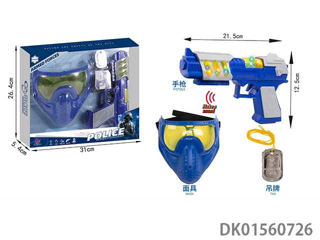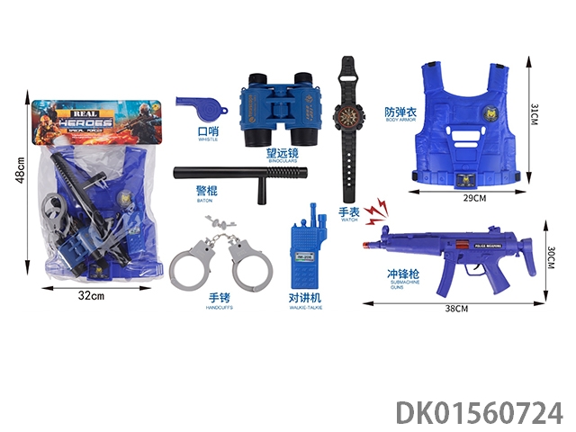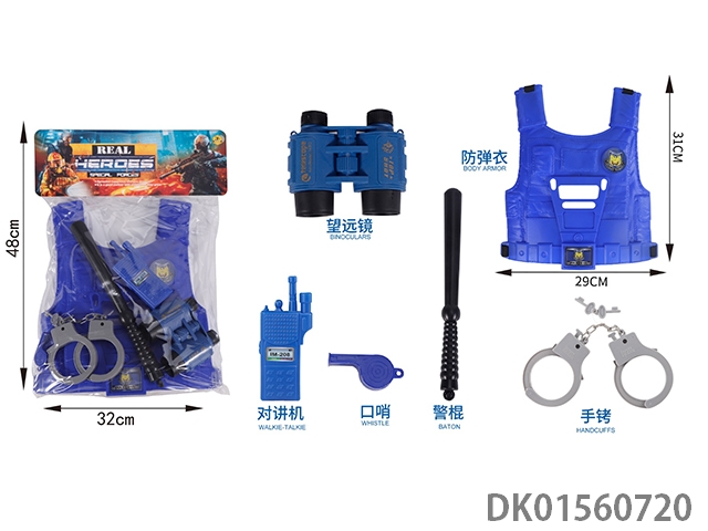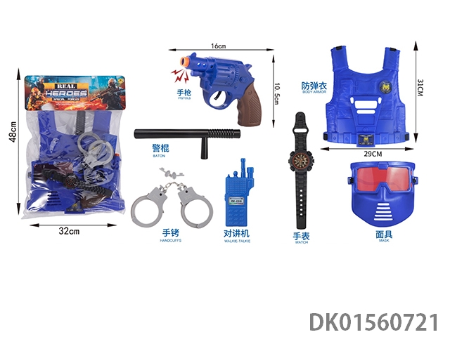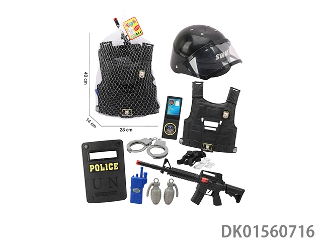 Police hat, flint gun, shield, and vest suit