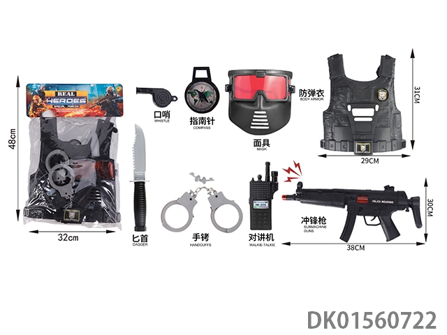 Plastic vest clothing and submachine gun police suit