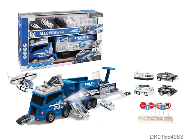 Inertia police container storage vehicle with alloy car (spray light music)