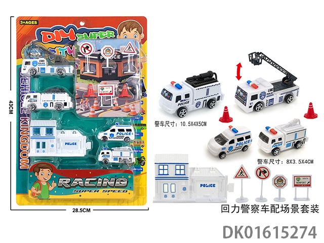 Warrior police car with scene set